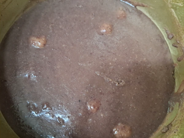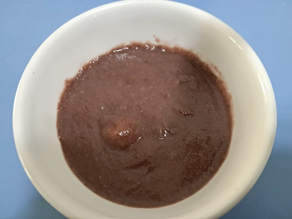 팥에 잡곡밥을 넣고 믹서기에 갈았어. 사진처럼 살짝 잡곡밥 알갱이가 보일 정도였다.