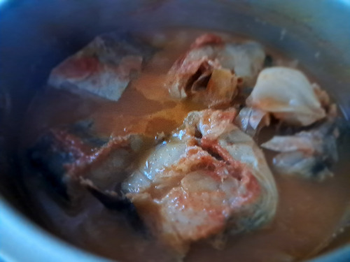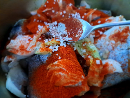 남긴 5토막을 소금에 절여놓았는데 이틀이 지났으니 자작한 국물이 있는
