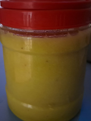 없어야 하니 곱게 갈았다. 완성된 꿀레몬생강청 3스푼 넣고