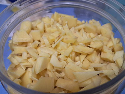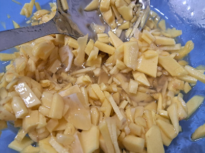 솔로 하나하나 닦고 껍질을 벗겨 잘게 썬 생강! 국산인데 뽀얗고 예쁘다.