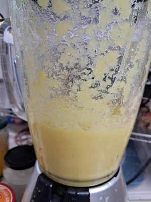생강을 조금씩 더 넣어주며 달래준다. 믹서기를 계속 돌리면 모터에