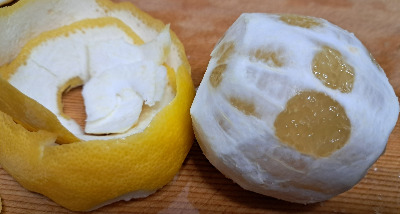레몬 껍질은 영양이 많아 양식에도 사용하는데 떫은맛이 나니 그만두었다.