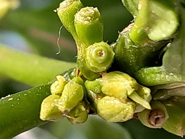 커피꽃이 진 자리에 커피 열매가 맺히려고 준비 중이다.