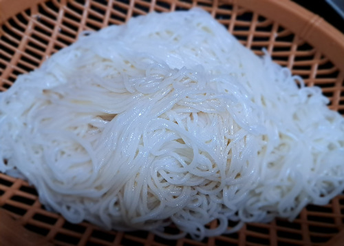 * 물이 팔팔 끓으면 마른국수 소면 1인분 양이 오백 원짜리 동전보다 조금