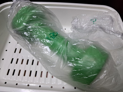 큰 통에서 작은 통으로 옮기고 아래 사진처럼 거름망을 덮어주었다.