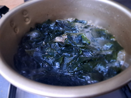 * 미역과 소고기에 간이 배서 부드럽다. 미역이 볶아지면 물 7컵을 부어주고
