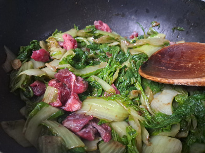 얼갈이배추에 배일 때까지 8분 정도 볶아준다.