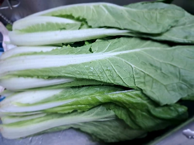 1. 단을 풀고 한 뿌리씩 자르고 속을 털고 기다린 겉잎은 반으로 잘랐다.