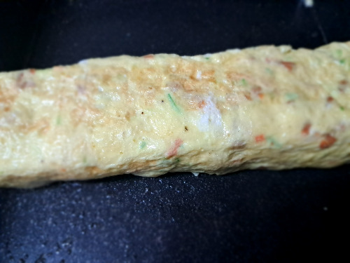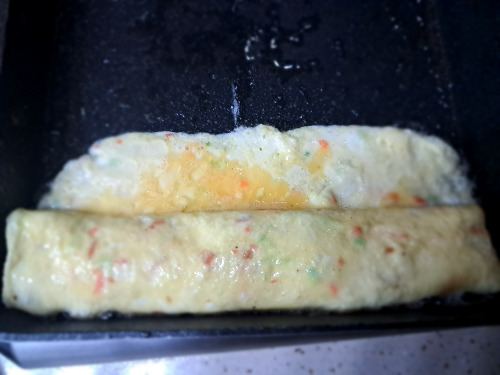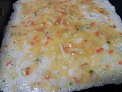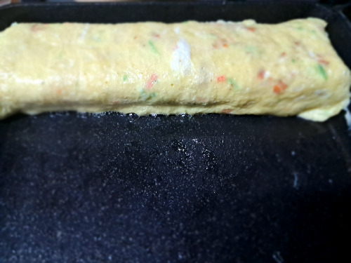 앞쪽에 계란물을 넓게 부어 빈 공간을 채워준다.