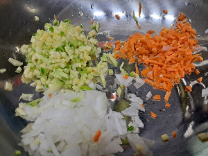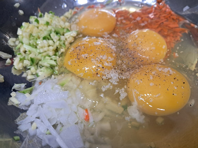 애호박과 양파, 당근을 사진처럼 채를 썰어 잘게 다졌다.