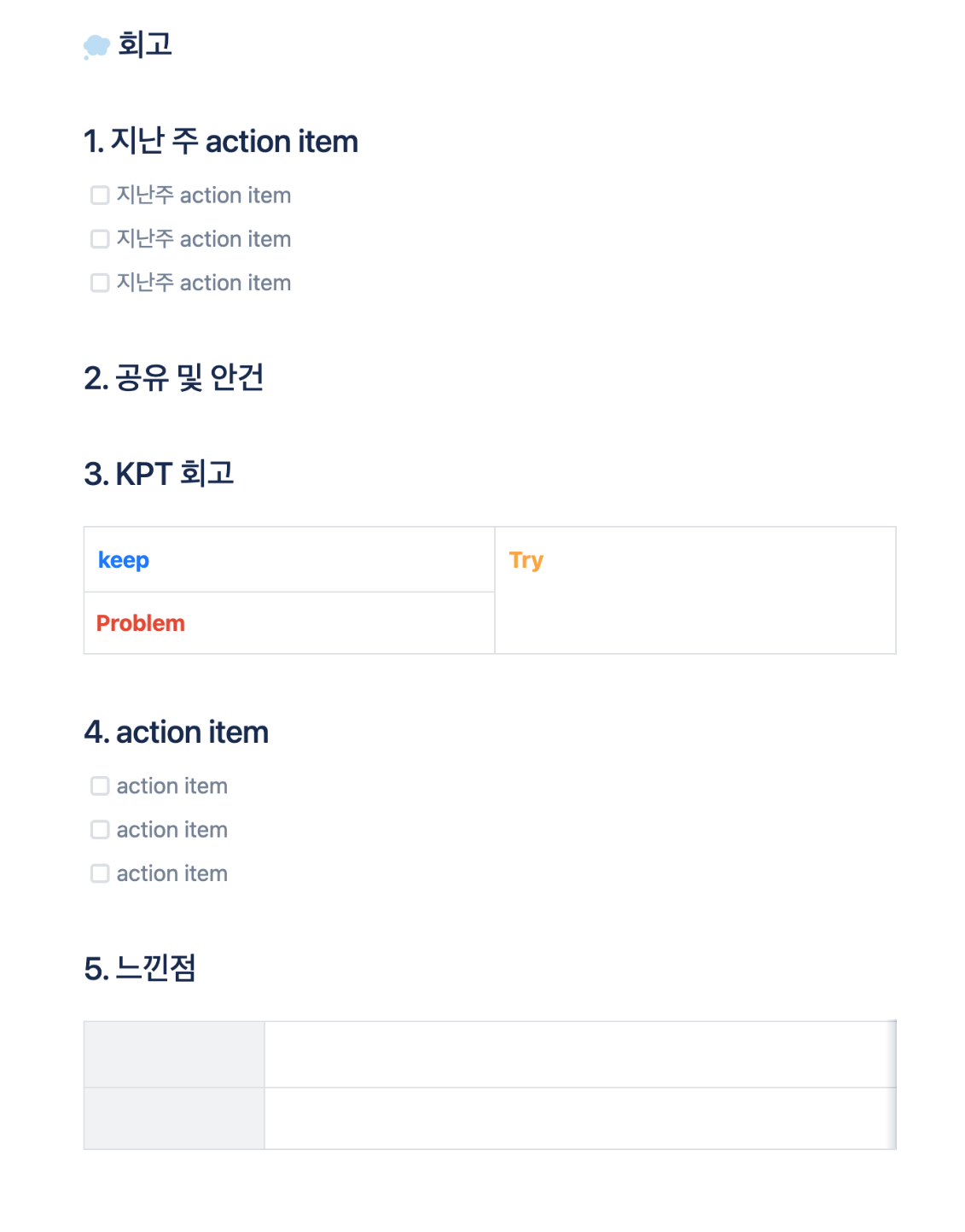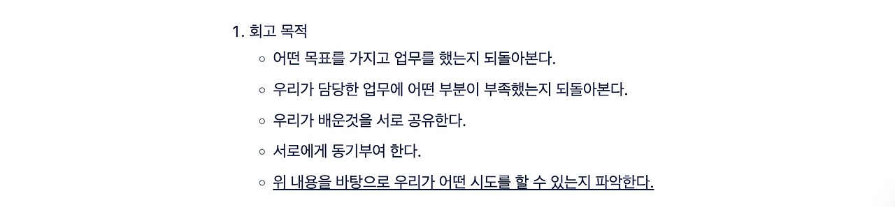 상황에 따라 공유 및 안건과 느낀 점은 생략하기도 한다.