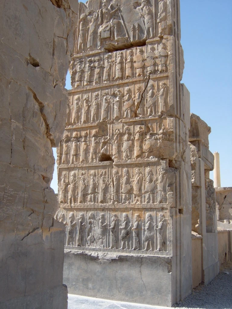 로마보다 훨씬 앞선 페르세폴리스는 돌을 쌓아 올린 유적이지만 이 쌓아 올림에 페트라의 방식(깎아냄)을 더하고 있다. 로마와 페트라의 유적은 페르세폴리스의 영향을 받은 것 같다. 페르세폴리스의 백미는 그리 깊지 않게 조각되어 궁궐 전체를 감싸고 있는 부조들이다. 조로아스터교의 상징에서부터, 아케메네이드 왕들과 신하와 시종, 군사들, 말의 엉덩이를 물어뜯는 사자, 괴물과 싸우는 사람, 조공을 바치는 이방인들, 반인반마의 조각들, 정말 만들 수 있는 공간과 벽마다 아름답고, 섬세한 부조들로 꽉 차있다.
