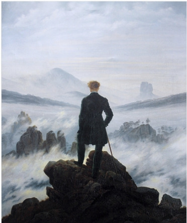 카스파드 다비드 프리드리히 [안개 바다 위의 방랑자] 1800년대 초 독일 낭만주의 풍경화의 대표작으로, 현재도 수많은 패러디를 만들어내는 작품이다. 니체의 만화적 얼굴을 합성하여 [차라투스트라는 이렇게 말했다]와 더욱 확장하여 니체 철학에 대한 이미지로 제시되는 익숙한 그림이 되었다. 이 그림의 제작 연도는 니체 출생 前이지만 니체가 이 그림을 봤는지는 모르겠다. [차라투스트라는 이렇게 말했다] 3부 시작 시점에 차라투스트라는 자신의 동굴로 돌아가고자, 자신의 고독 속으로 다시 들어가고자 산을 넘어 반대쪽 항구로 향한다. 그 길 위에서 차라투스트라는 삶의 은유인 바다를 내려보고, 그 바다의 고단함과 돌아갈 고독을 그리워한다.