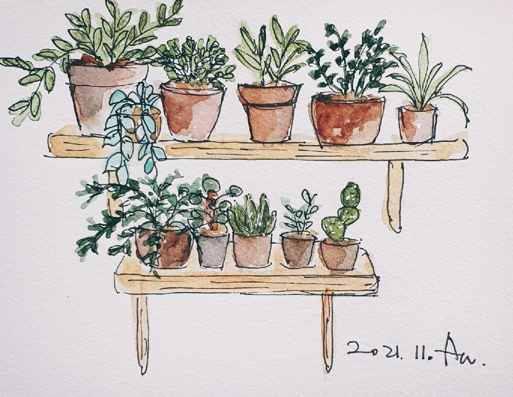 식물들이 점점 많아지면서 제2의 육아를 하는 것만큼이나 손도 많이 가고 시간도 많이 든다. 하지만 식물을 돌보는 시간은 나 자신을 돌보는 시간이기도 하다. 마른 흙에 촉촉이 물을 적시면 옹졸하고 메말랐던 내 마음도 촉촉해지고 여유로워진다. 마른 잎을 정리하면서 마음속에 쌓여있던 여러 감정의 찌꺼기들이 깨끗이 사라진다.