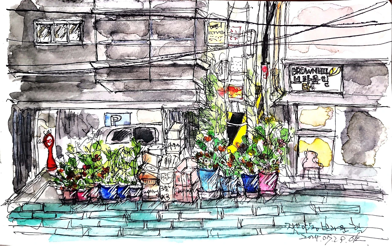 빌라 앞과 인도 사이의 좁은 공간에 가지런히 화분들이 놓여있다. 자세히 보고 싶어서가까이 다가갔다. 일일초, 고무나무, 수국, 백일홍, 채송화.....서로 다른 식물들이, 서로 다른 매력을 뽐내며 사이좋게 옹기종기 모여있다. 다양한 식물들이 섞여 있으니 오히려 조화롭다. 주변 식물들과 선의의 경쟁을 하며 더 예쁘고 더 건강하게 자랄 것이다.
