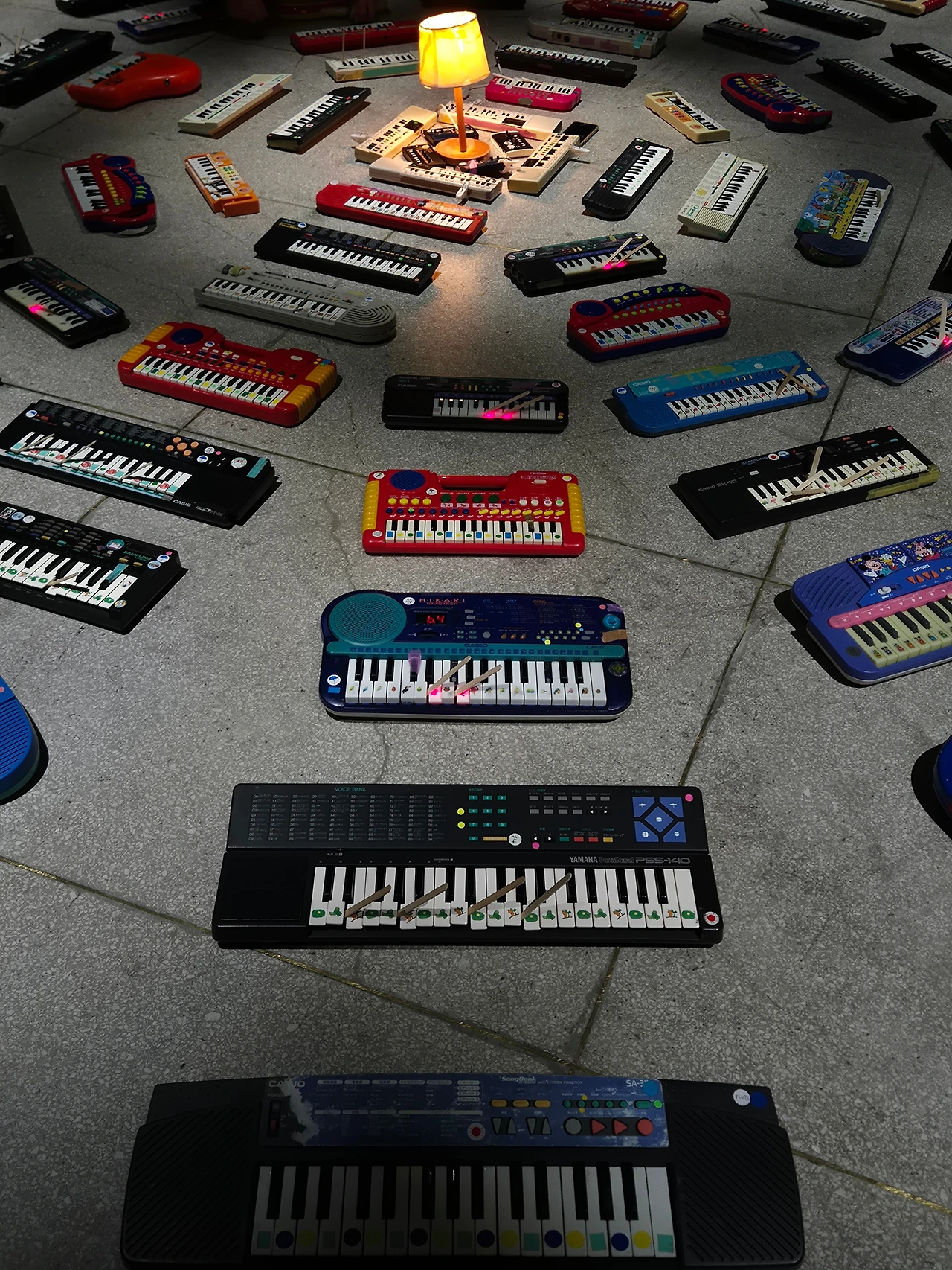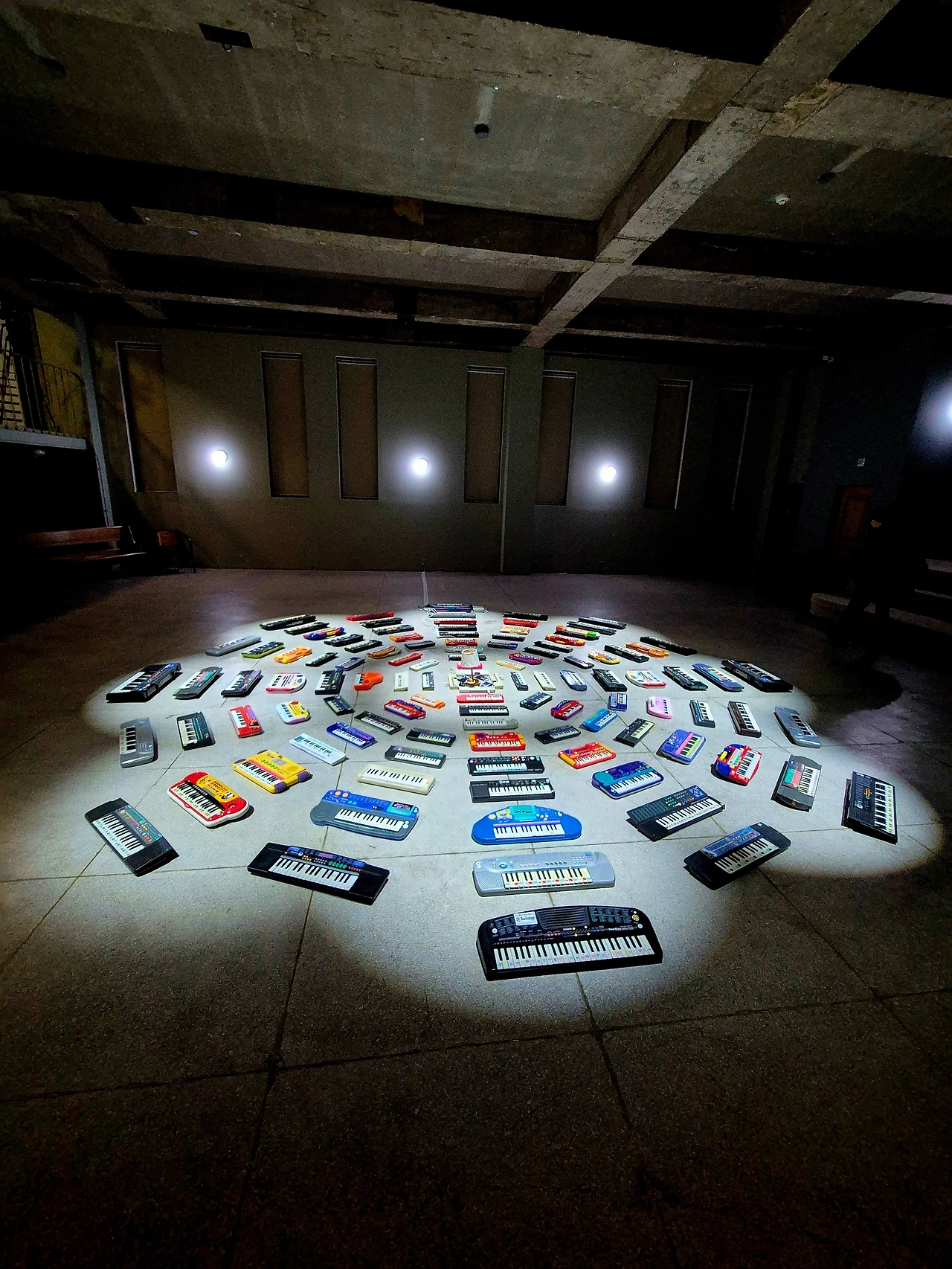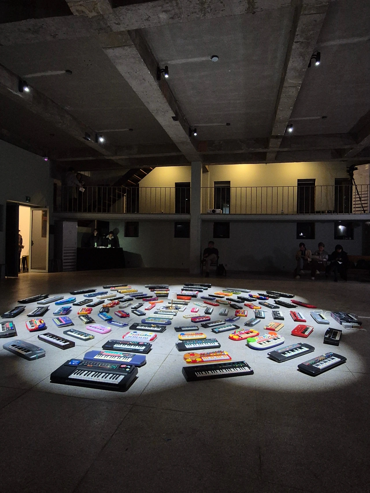 100대가 넘는 토이 키보드로 펼치는 라이브 퍼포먼스, 동일한 주파수와 음파가 결합되며 새로운 소리를 만들어내는 퍼포먼스다.