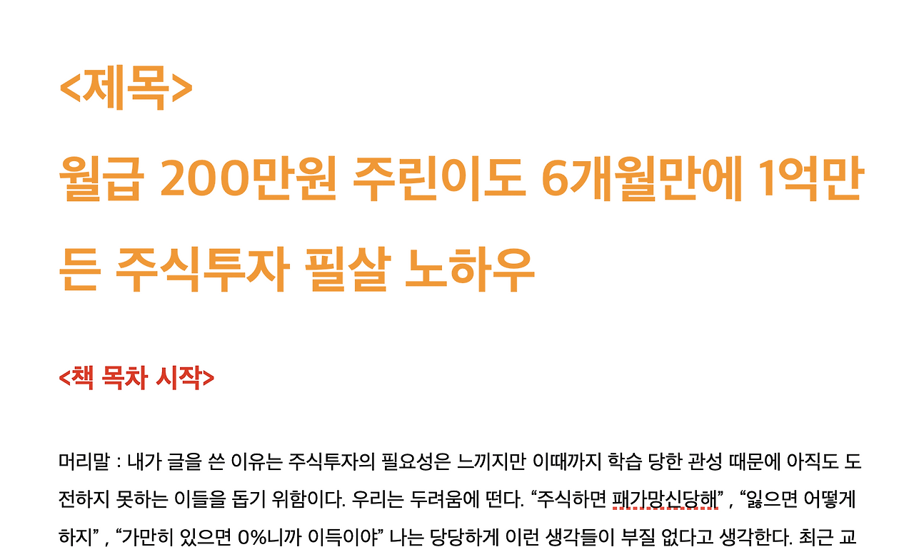 사업 아이템은 투자 블로그 광고수익과 포스팅 내용을 가공한 전자책이었다.