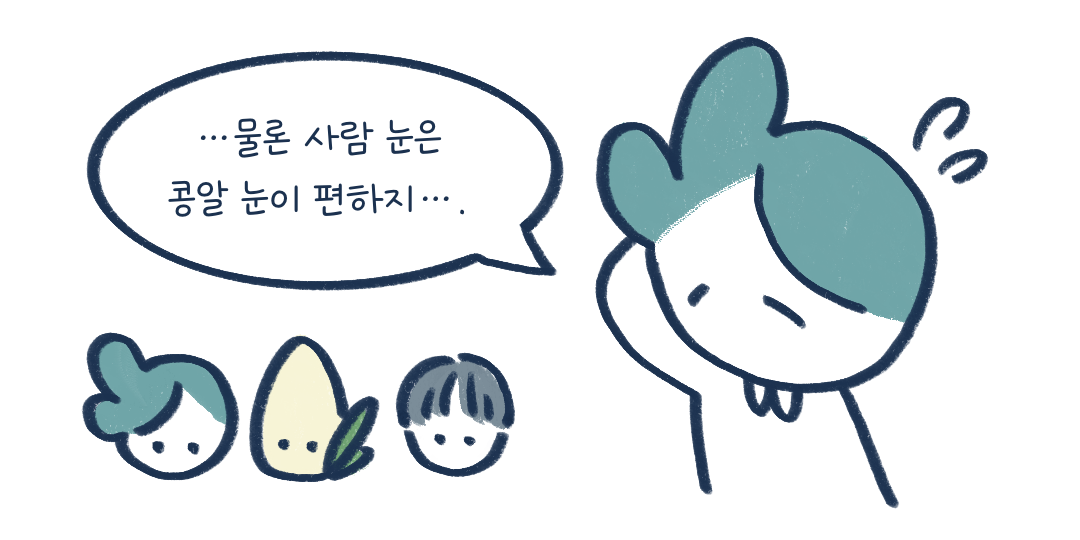 집사로서 맞지 않는 신념을 밝히자면 내가 가장 좋아하는 동물은 원래 고슴도치였다. 고슴도치, 다람쥐 등 조그맣고 콩알을 닮은 눈으로 오도도 달려가는 동물을 좋아했다. 그런데 지금은 고양이의 매력은 눈이라며, 인스타툰 캐릭터를 만들 때도 대표적으로 쓰이는 콩알눈을 멀리 하고 있다.