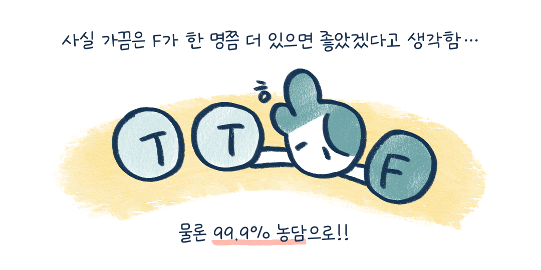 그럼에도 우리는 이 길을 택했다. 그건 아마 내가 T 사이에 낀 F여도 그들과 그만큼 친하고 그만큼 가까운 사람이 될 수 있었다는 얘기일 것이다.