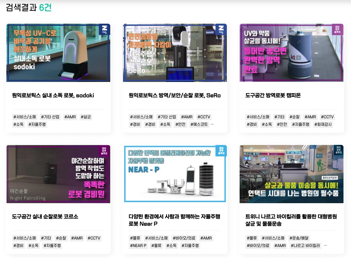 그래서 이 문제를 해결하기 위해 아주 똑똑한 영웅을 모셔봤습니다. 그 정체는 바로 방역로봇인데요. 다양한 로봇 도입 사례들을 볼 수 있는 마로솔에서도 방역 로봇을 활용해 건물 내 방역을 진행하는 사례가 많았는데요. 원익로보틱스부터 도구공간, 트위니 등 다양한 SI기업에서 방역 로봇 솔루션을 수행하고 있었습니다.