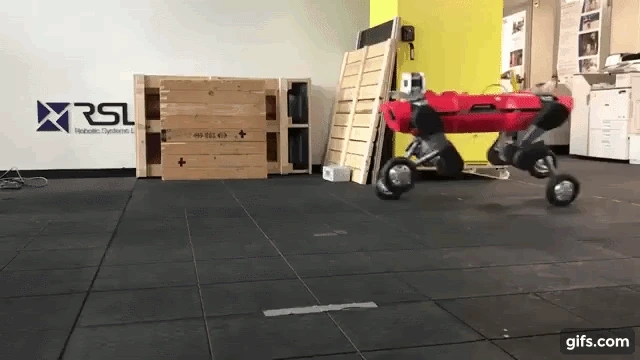 네 바퀴를 모두 풀어 헤치면(?) 최고 시속 22km로 자동차처럼 주행할 수도 있구요. 바퀴를 잠그면 네 발 달린 동물처럼 걸을 수도 있습니다. 이런걸 4륜 4족이라고 하나요? 4륜 로봇도 본 적 있고, 4족 로봇도 본 적이 있지만 4륜+4족 로봇은 처음이네요.