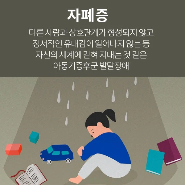 이렇듯 우리가 흔히 알고 있는 자폐증의 증상으로는 다른 사람과 관계가 형성되지 않고 정서적인 유대감이 일어나지 않는 등의 모습들이 있는데요. 어린이 1,000명당 약 1명 정도, 후천적으로 출생 초기부터 보이게 되는데 수치로는 약 0.1% 정도이지만 우리 아이에게서 발현되면 100%에 해당한다고 할 수 있습니다.