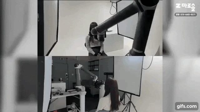 - 그렇습니다. 최근에는 이렇게 협동로봇을 활용한 안전한 시스템으로 반복적인 인물 사진 및 영상 촬영이 크게 각광 받고 있죠. 비정상적인 충돌에도 안전한 운영이 가능하구요.