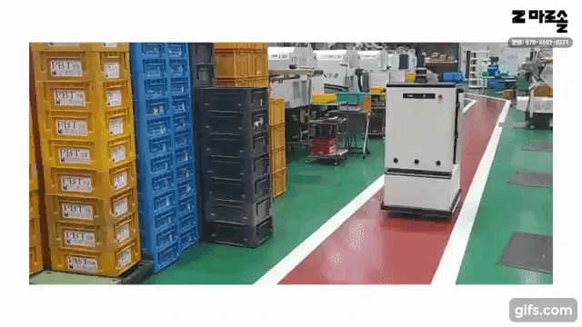 또 통합 스마트 관제 컨트롤 시스템을 통해 모바일 앱으로 쉽게 작업을 지시할 수도 있고 사용법 및 관리법도 굉장히 간편하구요. 복잡한 공간에서는 제자리에서 360도 회전이 가능해 유연한 작업 위치 및 동선 작성이 가능하고 폭도 110cm밖에 되지 않아 좁은 간격의 통로를 이동하는데에도 만능입니다.