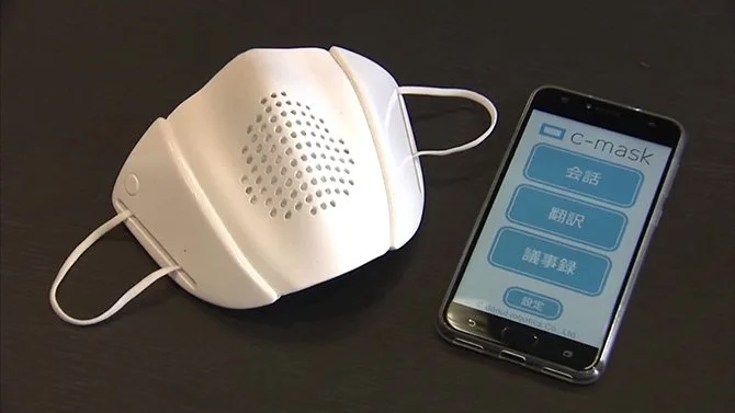 이 마스크도 그 중 하나인데요. 이른 바 '스마트 마스크'라고 불리는 제품으로, 이 마스크를 착용하고 스마트폰 어플과 연동하면 마스크 사용자의 음성을 판독해 즉시 번역하는 기능이 있다고 합니다.
