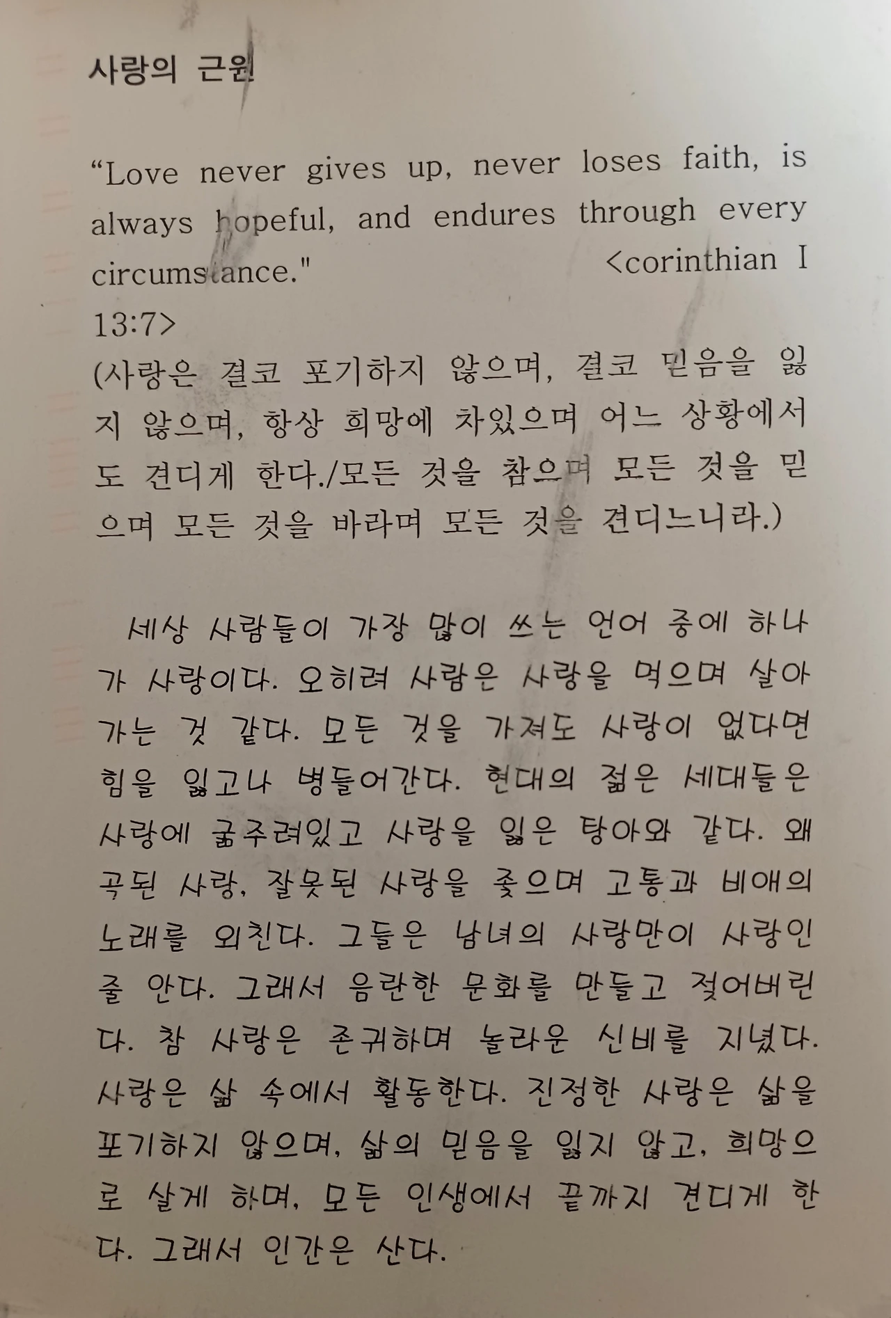 오래전 친구에게 보낸 엽서가 되돌아왔다. 고등학교 시절에 학교 내 기독학생회(SCM)에서 함께 활동한 신앙의 친구였다. 되돌아온 엽서를 버리지 못하고 간직해 놨었다. 2006년 6월 15일 날짜가 찍힌 엽서였다. 그땐 먼 미국에 사는 친구였다. 그는 기독학생회 회장이었고, 나는 봉사부장이었다. 나는 열심히 봉사활동을 찾아서, 만들어서 활동을 했었다. 먼저 교무실에 폐지들을 모아 리어거로 고물상에 팔아 수입금으로 장학금에 보탰었다. 그리고 학교 내 이발소를 계단 밑에 교장의 허락을 받아 우리가 직접 꾸몄다. 그리고 30 환에 머리를 깎아주고 수입금을 장학금에 보탰었다. 그 시절을 잊지 못한다.