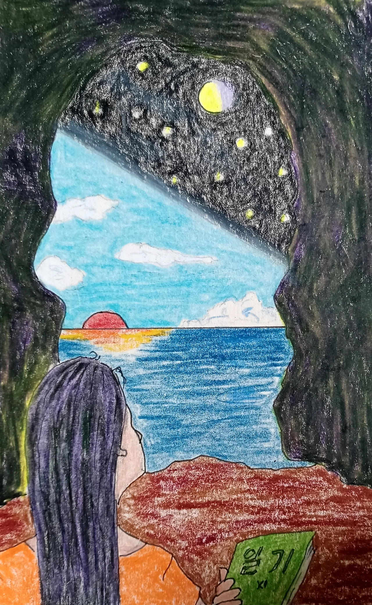 오늘도 소녀는 밤늦도록 엄마의 동굴에서 나 홀로 머물며 뒤척이다가 엄마의 일기장을 열었다. 육지 생활 9년에 엄마는 많이 힘들어했었구나 하고 소녀는 생각을 했다. 엄마의 일기장을 읽어가던 소녀는 눈물을 흘리고 있었다.