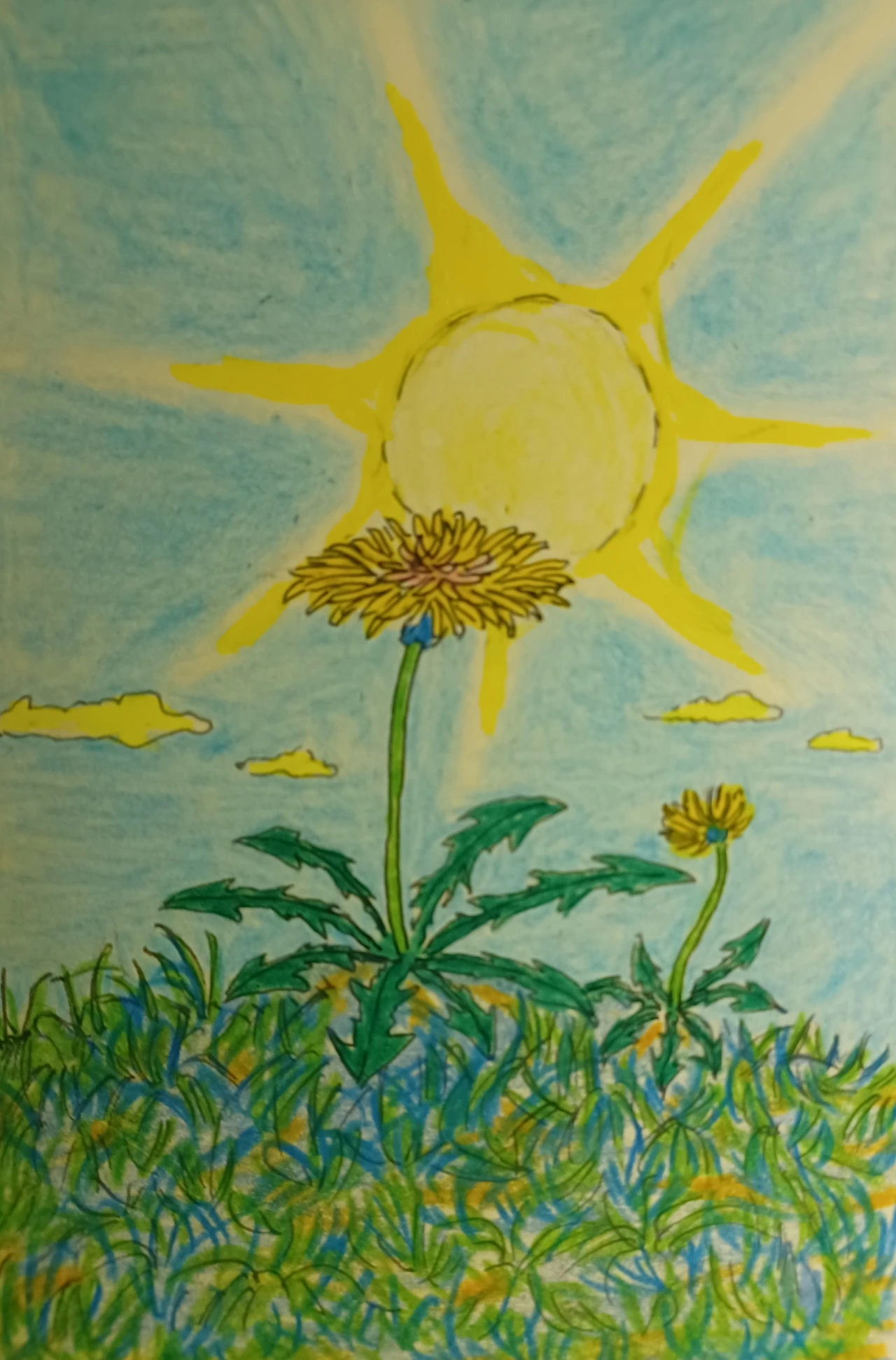 한낮에 소녀는 샴버그 집을 나와 뜨거운 뙤약볕을 받으며 들길을 홀로 걸었다. 호숫가를 지나 작은 언덕을 지나치던 소녀는 민들레 꽃을 발견하고는 주저 없이 민들레 꽃 옆에 누웠다. 그리고 소녀는 푸른 하늘을 바라보고 곁눈으로 민들레 꽃을 쳐다보았다. 눈부신 햇살에 눈을 찌푸려서는 해를 노려보았다. 그러자 민들레 꽃은 재밌다고 살랑살랑 좌우로 흔들어주며 해와 소녀 사이에서 고개 춤을 추고 있었다. 소녀는 손을 뻗어서는 민들레 꽃을 받쳐 보이며 미소를 지었다. 그러자 해는 안심을 했는지.. 열을 식히려는 듯이 심호흡을 하였다. 금방 눈치를 챈 소녀는 손끝으로 해를 가리며 흔들었다.