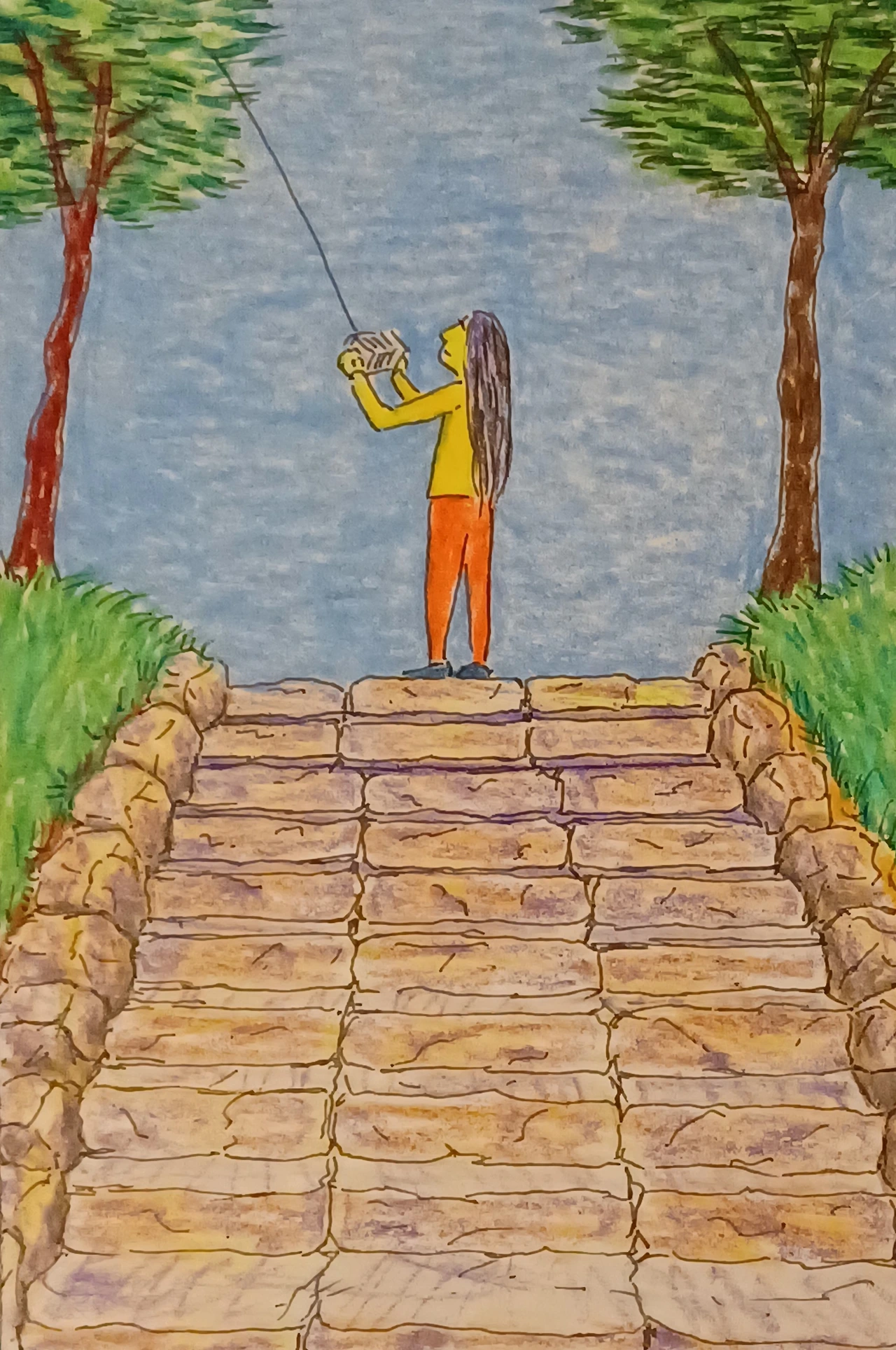 그러자 고향 할머니가 직접 연을 사 와서는 소녀에게 주고는 방법을 알려주었다. 뜻밖에 소녀는 금방 이해를 하고는 바로 연을 날렸다. 그런 소녀를 바라보던 두 할머니는 그늘로 가서 의자에 앉았다. 소녀는 뭔가 힐링이 됨을 느꼈다. 그래서 소녀는 계속 높이높이 연을 날렸다. 연도 좋아라고 이리 갔다 저리 갔다 춤을 추었다. 소녀는 시간 가는 줄도 모르고 바람에 연 꼬리가 팔랑이는 모습에 넋을 잃은 듯 열심이었다.