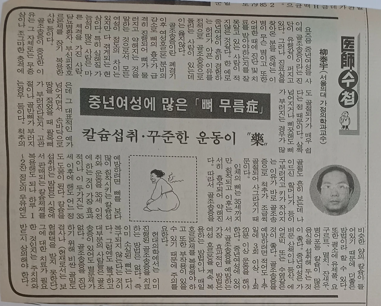 오래된 서류들을 뒤적이다가 발견한 중년 여성에게 많이 나타나는 증상으로써, 뼈 무름 증상에 대한 신문기사를 오려놓았던 것을 다시 읽어본다.