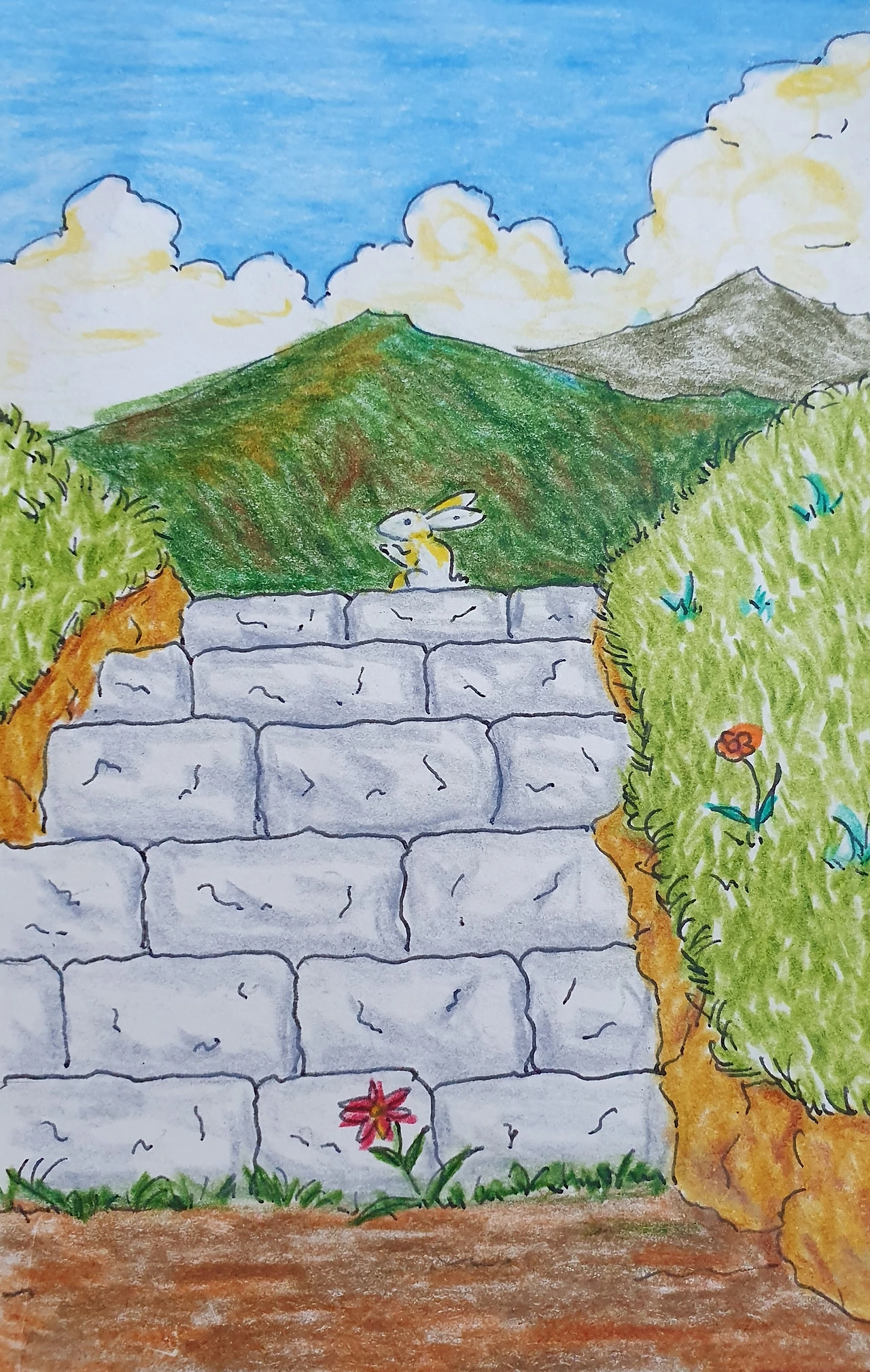 "소라 섬 토끼는 잘 있을까? 할머니가 돌보아 주시고 계시겠지!"