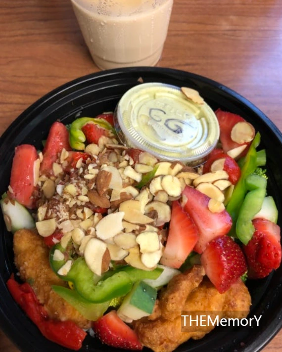점심으로는 Grain Bowl (곡물 볼?)인데 밥을 담고 치킨, 토마토, 파프리카, 아몬드 등등 내가 담고 싶은 재료들을 담는 간단하지만 건강한 음식을 주문했다. 함께 디카페인 라테를 코코넛 시럽을 넣어 주문했다.