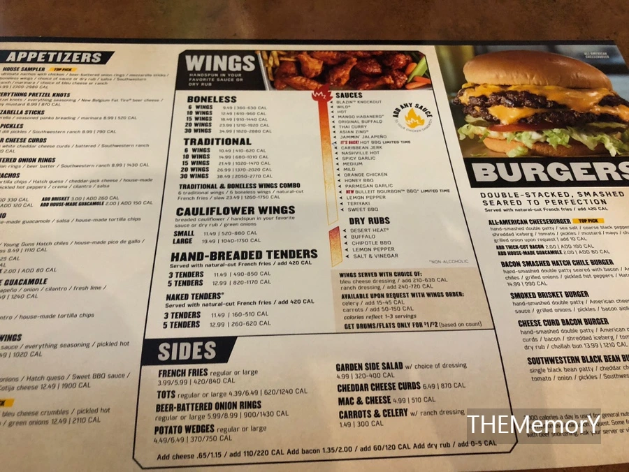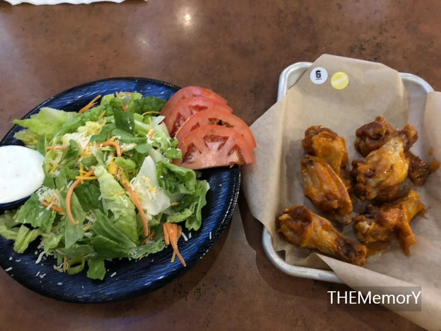 윙봉이랑 닭다리로 유명한 체인점인데 미국에서 흔히 볼 수 있는 식당이다. 미식축구를 보면서 저녁을 먹는 식당이어서 곳곳에 미식축구를 중계하고 있는 방송이 틀어져있었고 정말 미국 스러운 느낌이 물씬 풍기는 여러 가지 물품들과 인테리어 장식이 있었다. 너무 미국 스러운 레스토랑이었다.