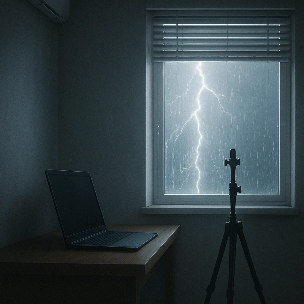 천둥이 규칙적으로 큰 소리를 내며 내리친다.