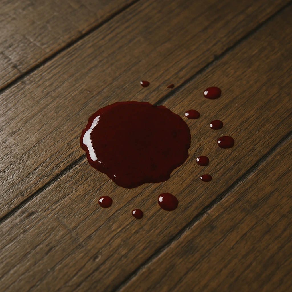 마룻바닥에 코피가 떨어진 걸 알았을 때, 난 쭈그려 앉아 휴지로 닦아냈다.