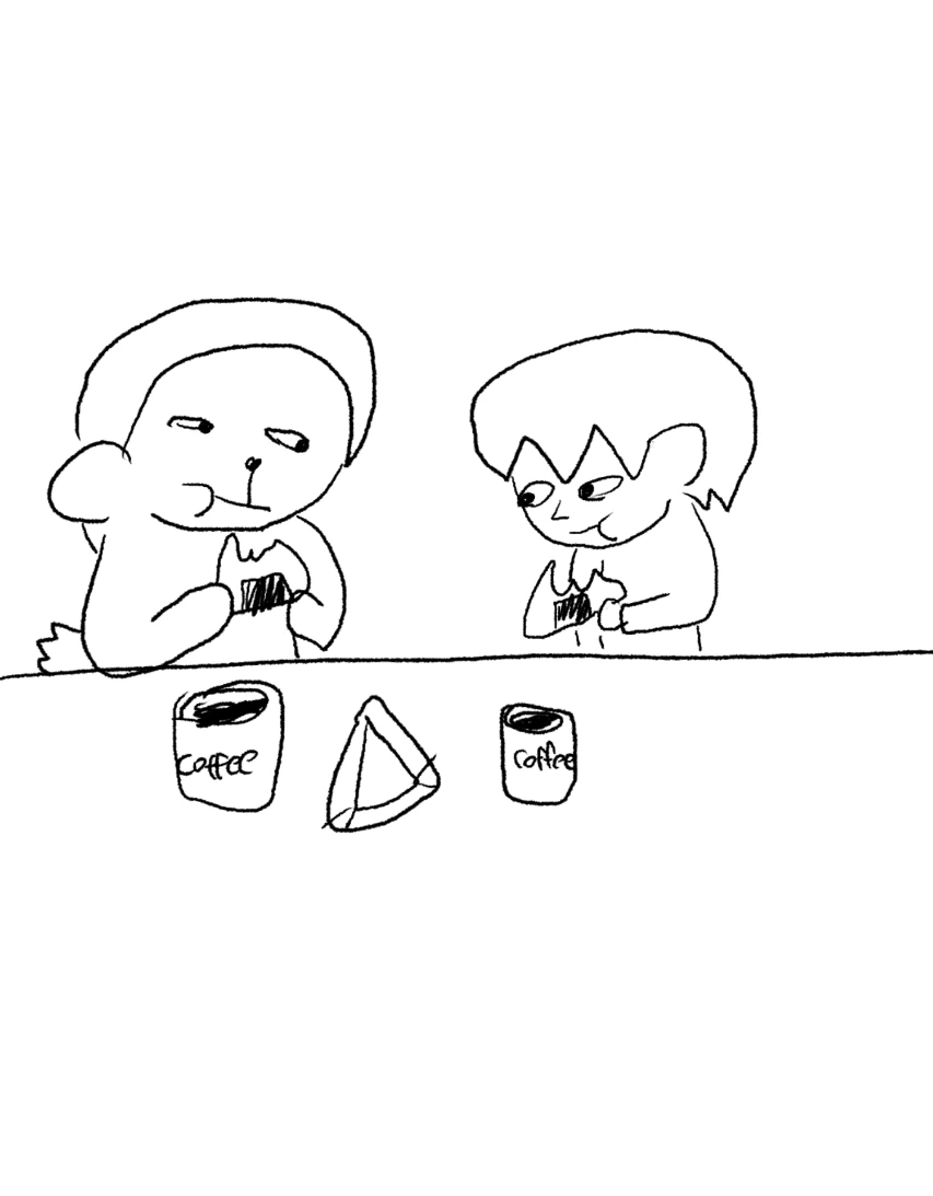 결국 나는 원숭이와 점심을 함께 먹었다. 우리는 편의점에서 파는 싸구려 참치가 들어간 삼각김밥을 사고 분명히 감자라고 쓰여있던 으깬 감자가 중간에 미미하게 들어간 샌드위치를 사고 따뜻한 커피를 사서 그것을 사무실 책상 위에 펼쳐놓고 먹었다. 삼각김밥은 마치 겨울날 밖에 놔둔 통조림처럼 차가웠고 샌드위치에서는 감자 맛을 찾기란 어려웠다. 커피만 먹을만했다. 원숭이는 그 음식들이 무슨 파인 다이닝이라도 되는 듯 조금씩 천천히 맛을 음미했다. 원숭이가 먹는 모습을 보고 있자니 고레에다 히로카즈 감독의 ‘万引き家族(어느 가족)’이 떠올랐다. 영화 속 주인공들은 서로 다른 곳에서 나고 자란 사람들로 무엇으로 얽혔는지는 모르지만 가족 행세를 하며 함께 밥을 먹고 잘 때는 같은 이불을 덮으며 살아가는 내용이다.