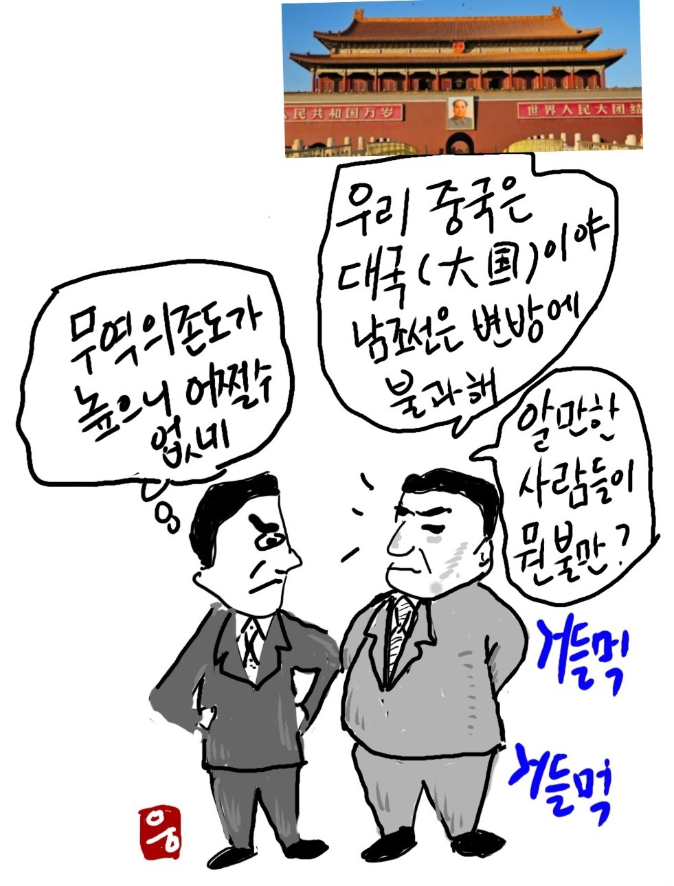14억 인구와 막대한 자원, 트럼프에게 한국이 옛날에 중국의 일부였다고 말하는 시진핑, 국장급 주한 중국 대사가 한국 정치권에 경고하는 모습 등 이런 현실에서도 우리는 중국에 말 한마디 하지 못한다. 일본에는 쌍심지를 켜면서 중국에는 조아린다.