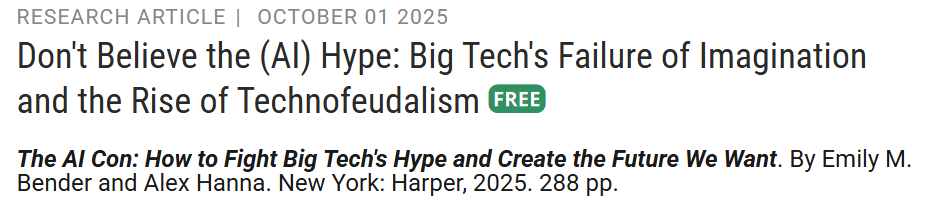 -"AI에 대한 열기를 믿지 마세요: 빅테크의 상상력 실패와 테크노봉건주의의 부상"