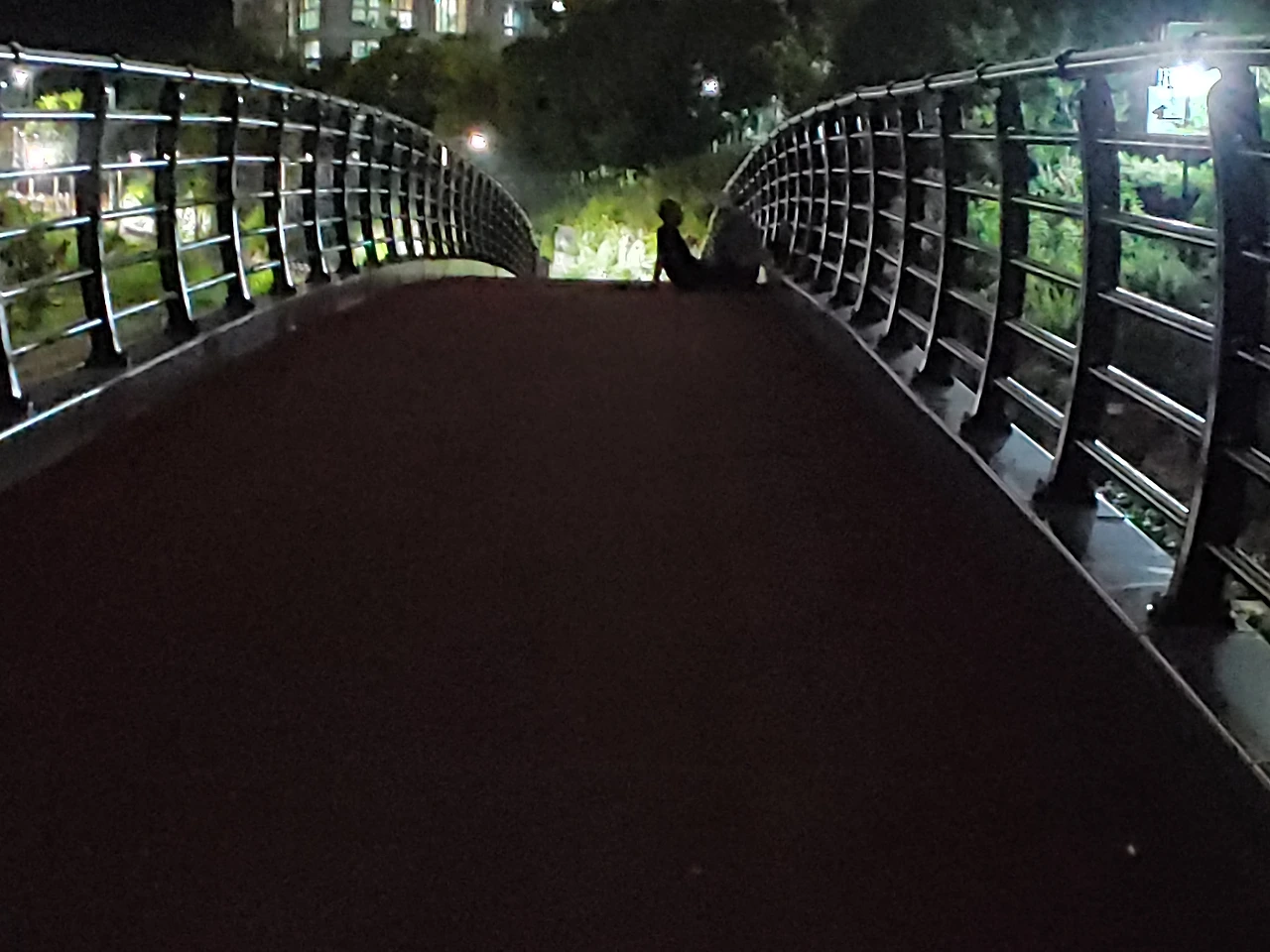 다리 위인 듯. 앉아 있는 듯, 풀벌레 소리가 들리는 듯, 바람이 부는 듯,