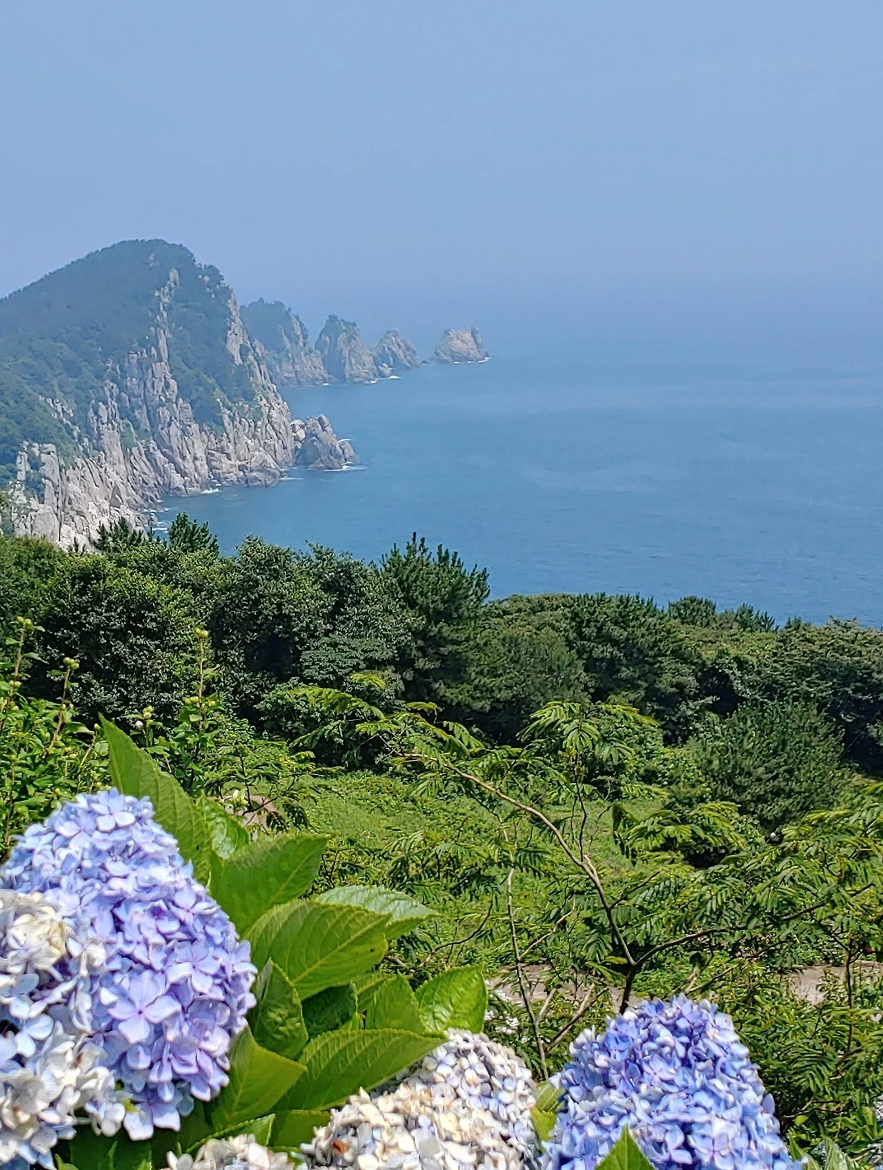 파란 수국 꽃도 고마웠고, 주황색 해당화도 고마웠고,