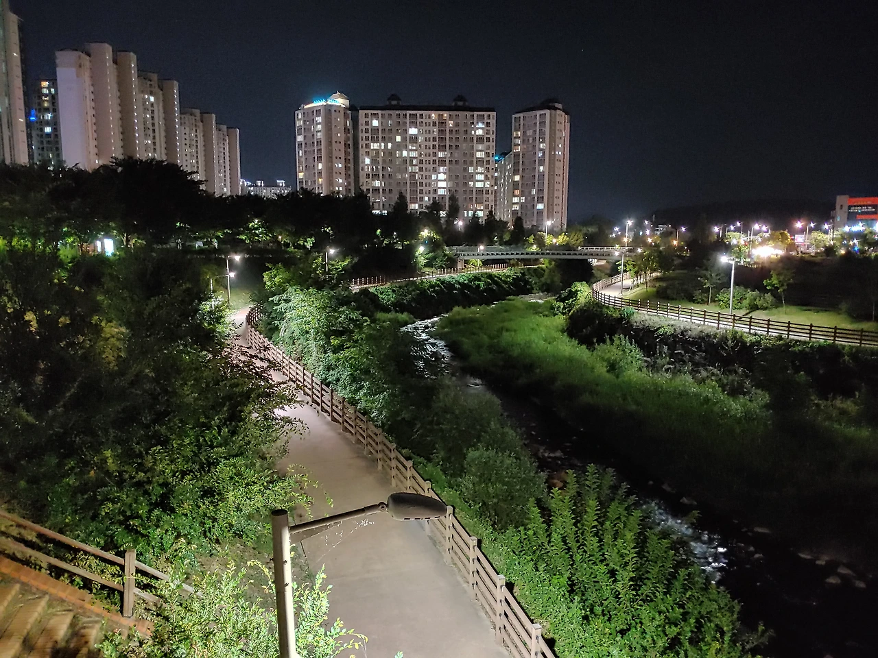 까만 밤, 가로등 불 밝힌 산책길을 걷는다.