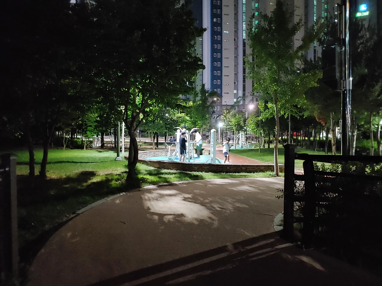 오른쪽 공원에선 사춘기 접어들었을 머슴애들의 변성기 섞인 목소리가 들려온다. 운동 기구를 끼고서 까불대는 모습이 보인다.