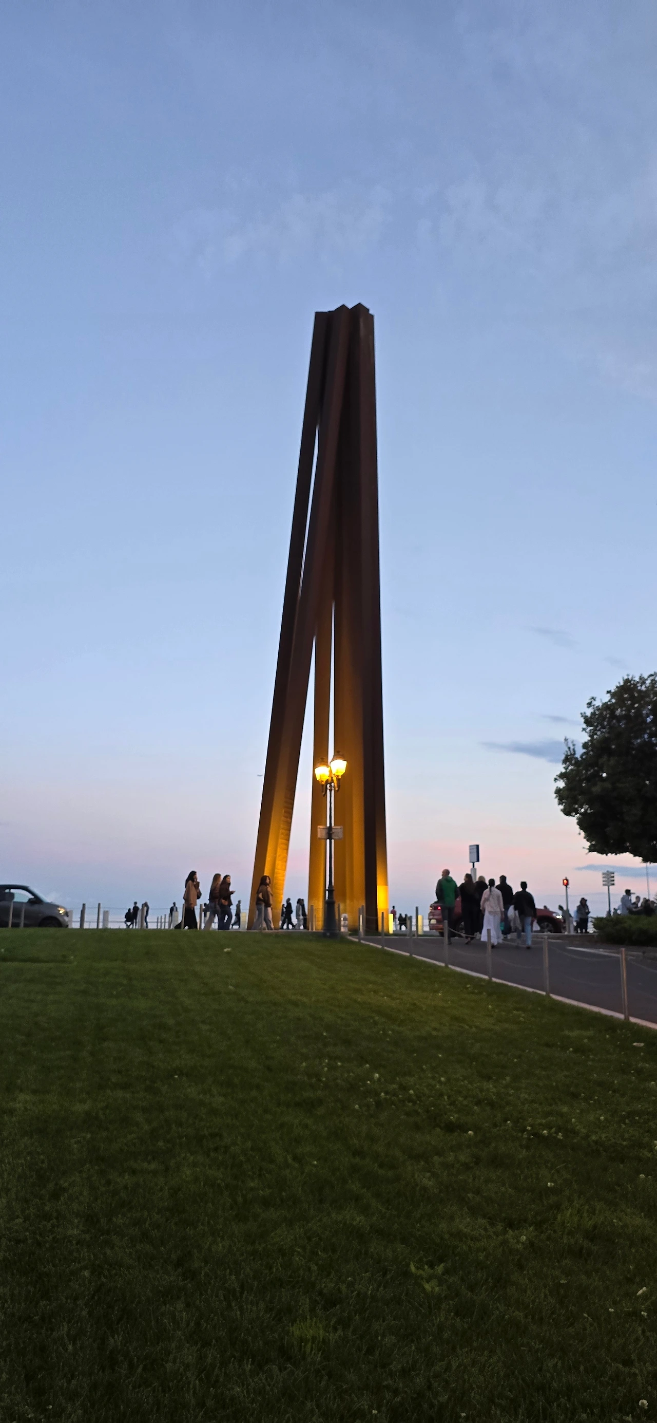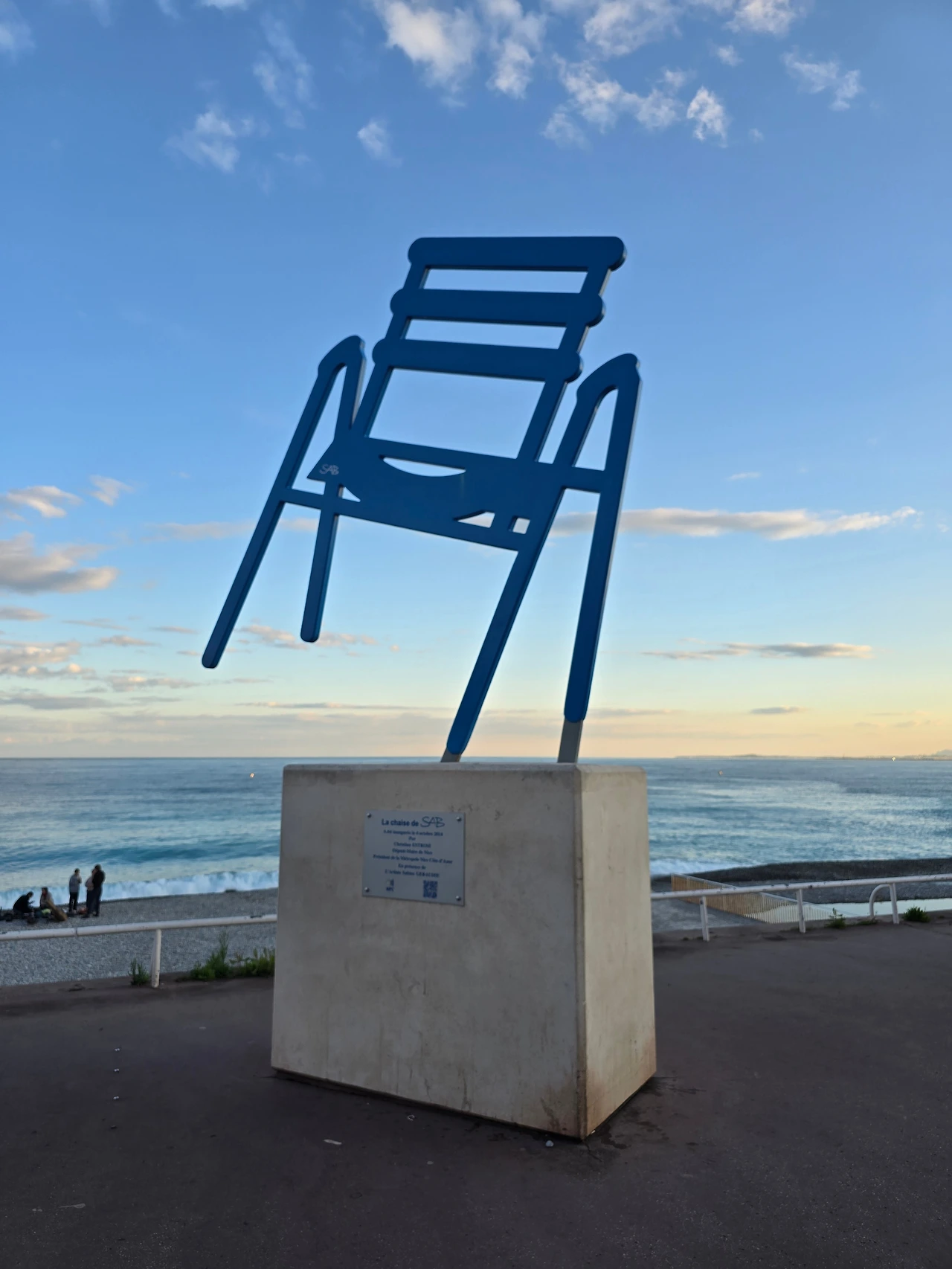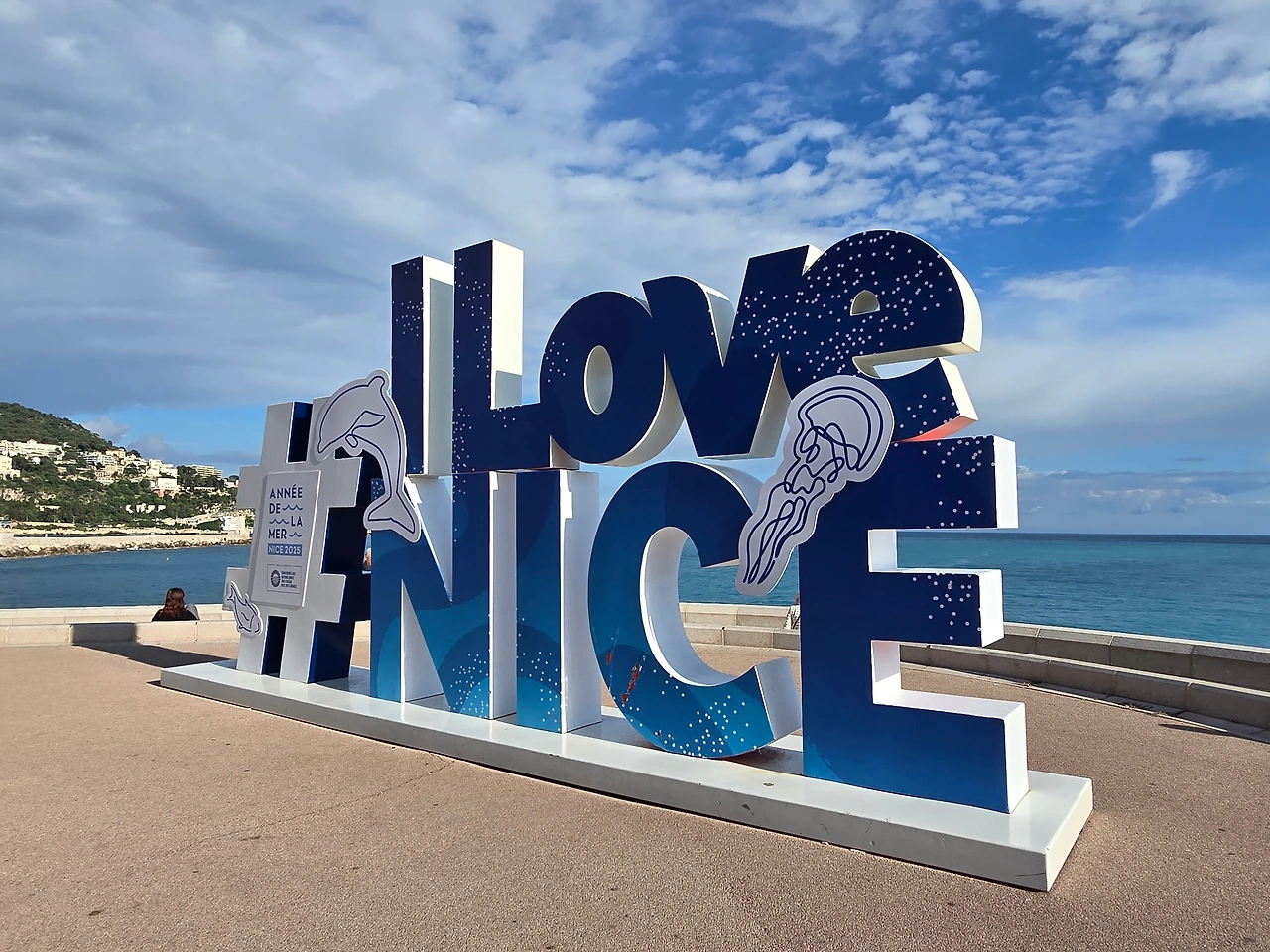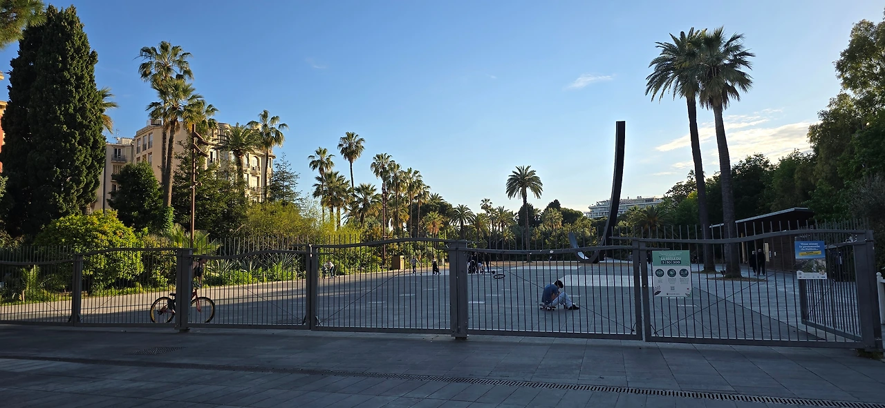 서쪽으로 걸어가다 보니 니스 해변 상징 중 하나인 의자 모양 조형물이 산책로에 설치되어 있는 것이 보인다. 조금 더 걸아가다 돌아서 동쪽으로 향한다. 시야 동쪽 끝에 언덕이 보이고, 그 어디쯤 있을 니스 해변의 또 하나의 상징인 'I love Nice' 글자를 찾아볼까 한다. 언덕은 캐슬힐이었고, 조금 더 앞으로 걸어가니 반원구형의 조형물이 해변 쪽에 우뚝하다.