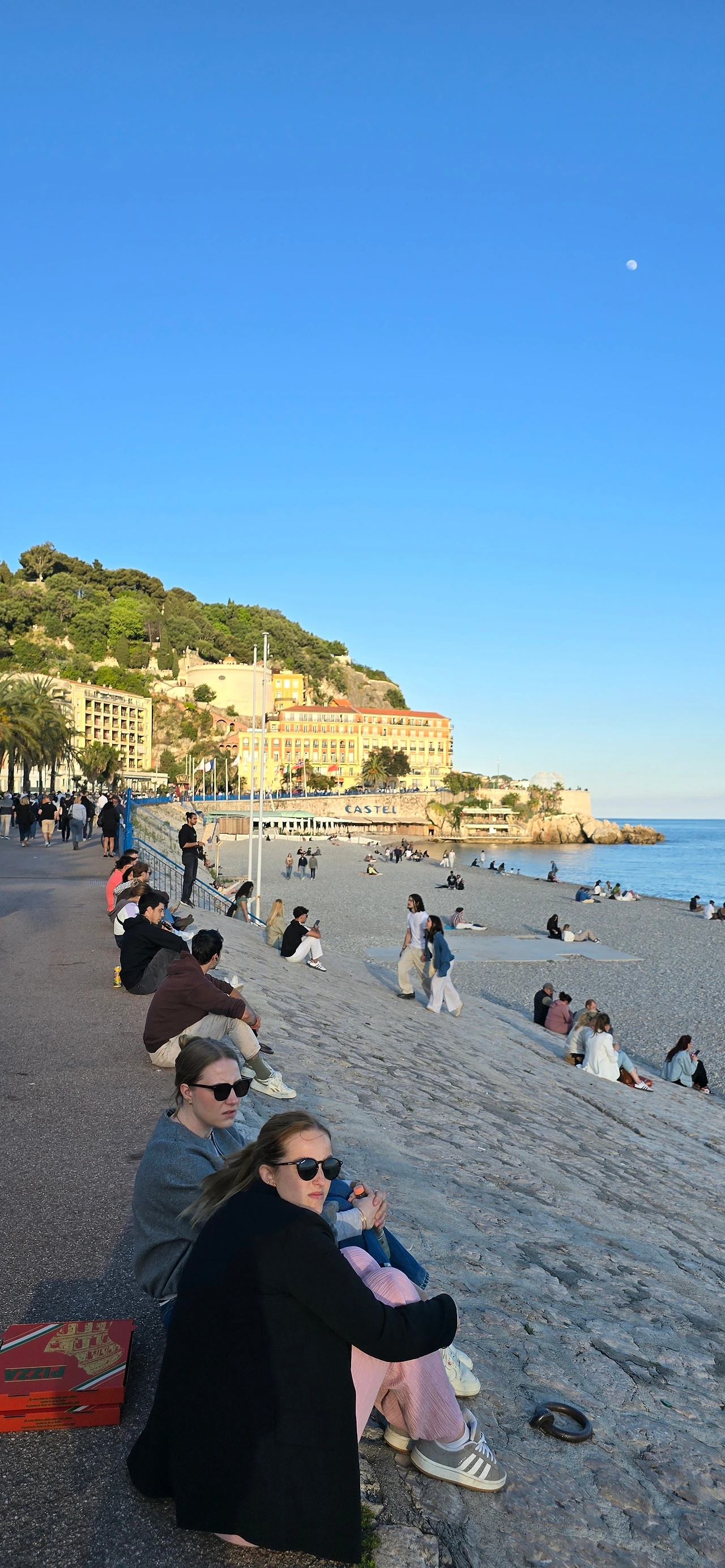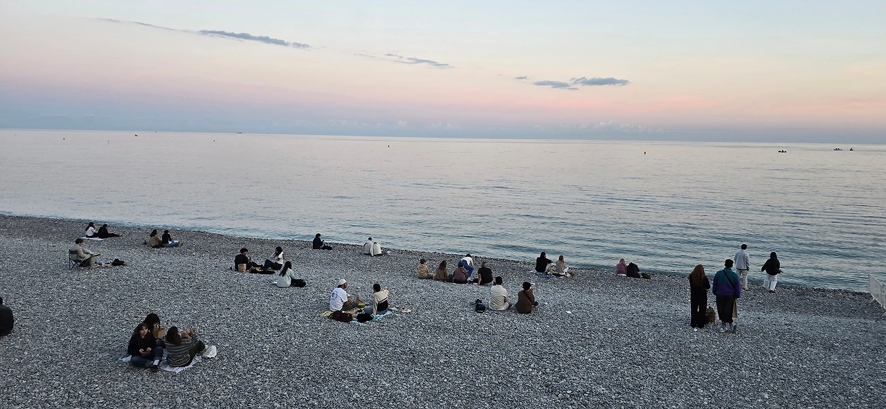 해변 조망도 하고, 산책도 하고 꽤나 흡족한 시간을 보낸 후 언덕을 내려왔다. 서서히 바다로 노을의 기운이 퍼져간다. 땡볕 아래 타오르던 바다는 차분히 가라앉고 있다. 반면 산책로는 이 시간을 기다렸다는 듯 많은 사람들이 쏟아지며 활기차다, 파도 쉴 새 없이 찰싹이는 해변 자갈밭에도 어느새 많은 사람들이 자리를 깔고 앉아 있다. 활기차게 걸어가는 사람들, 바다를 향해 나란히 배열된 카페에 앉아 있는 사람들, 산책로 가장자리에 걸터앉은 사람들, 해변 자갈밭 위 사람들, 모두 바다와 대기 가득 퍼지는 붉은 기운에 취하고 있는 것 같다.