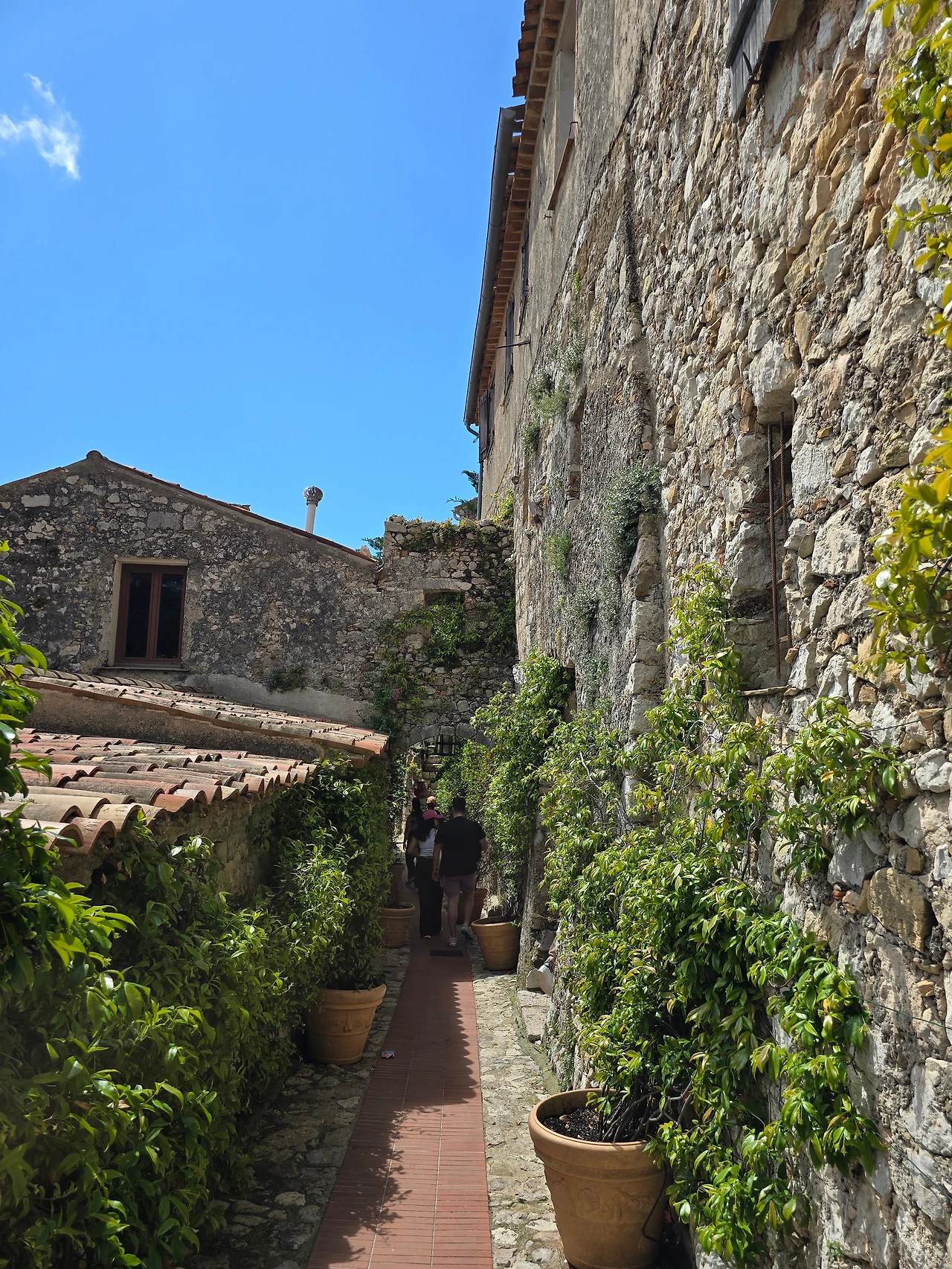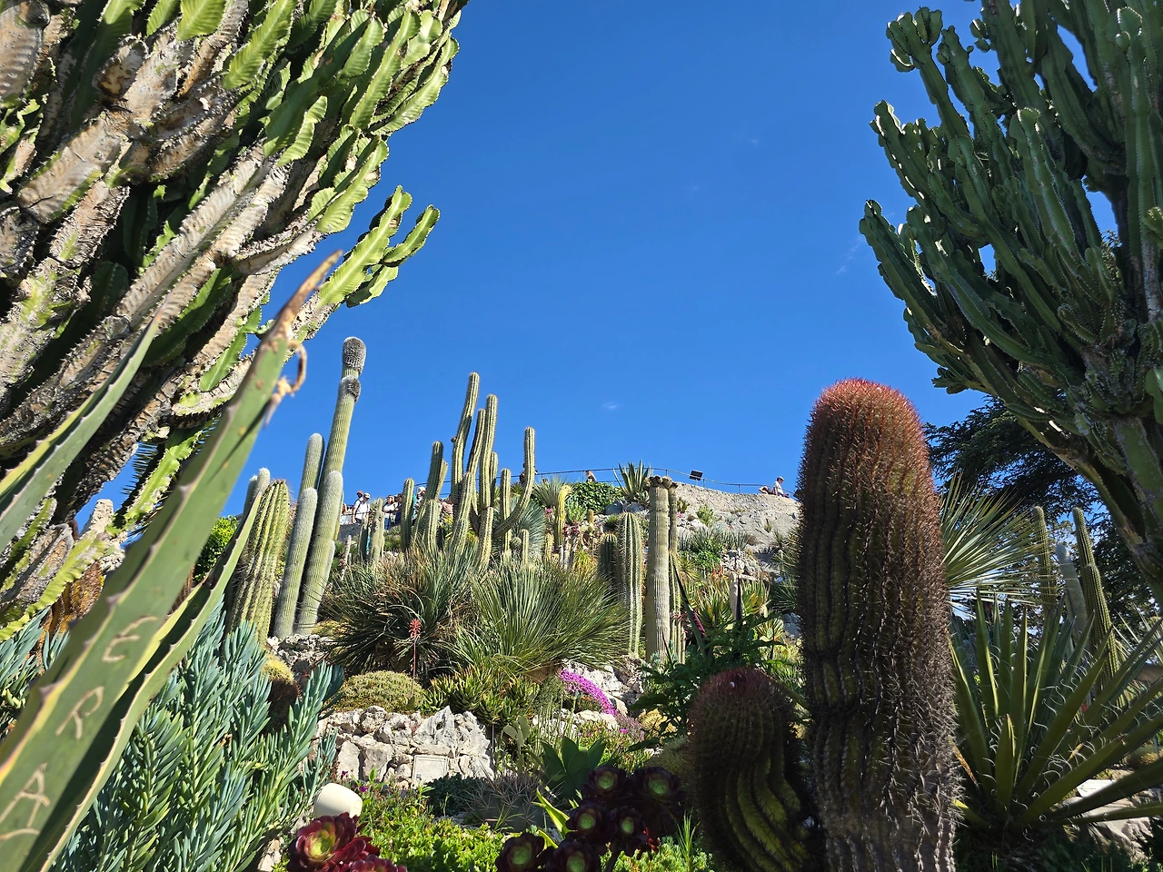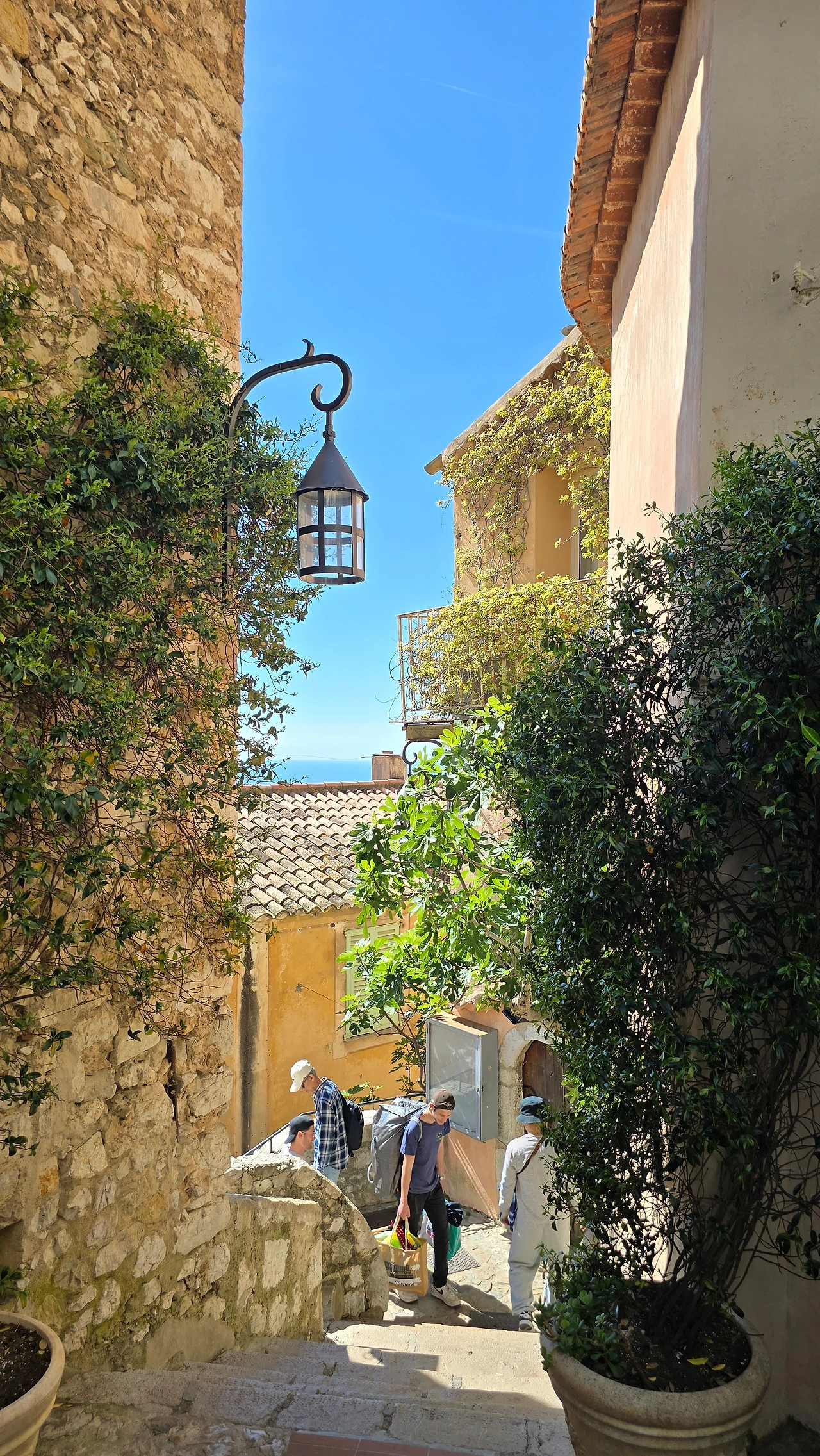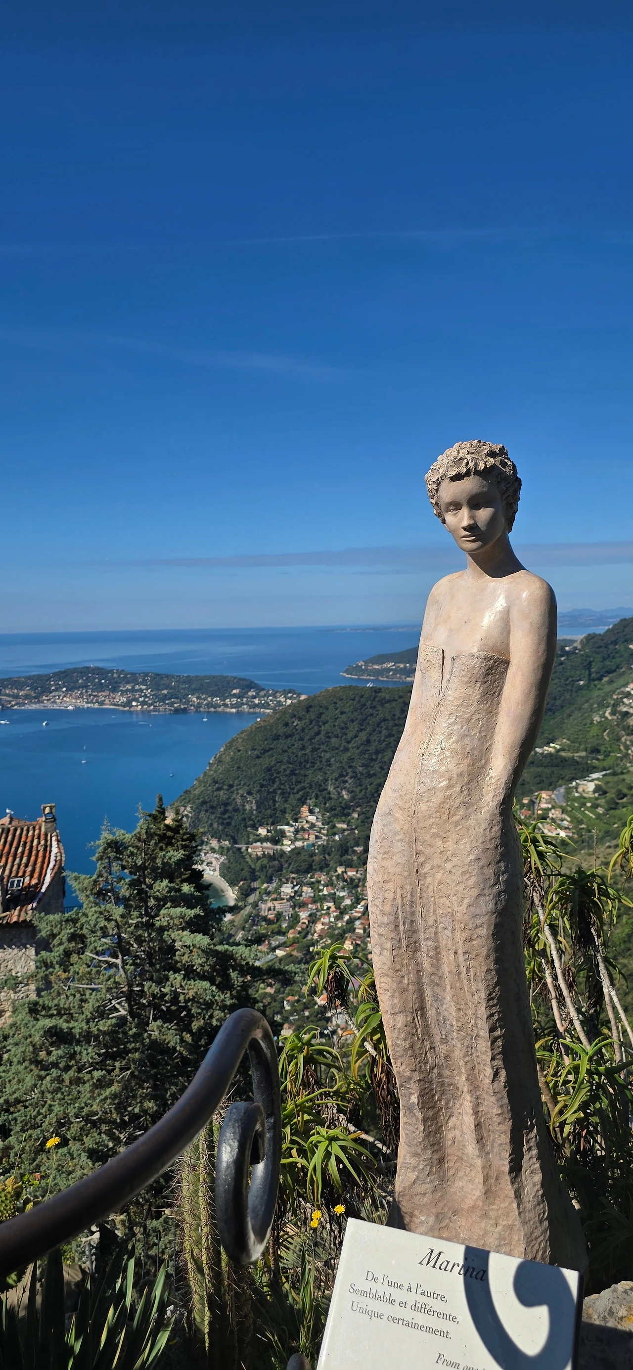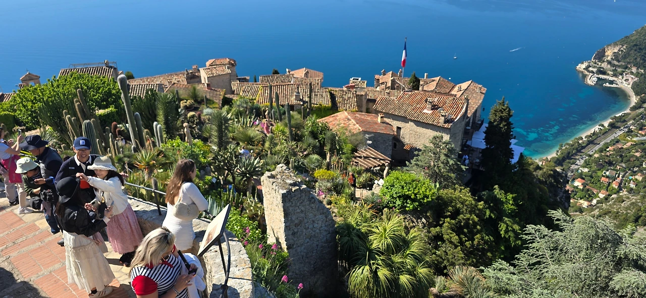 에즈 빌리지에서 유명한 레스토랑 '샤또 에즈'에 들어가 야외 테라스에서 한눈에 들어오는 드넓은 지중해 바다와 해변 마을을 내려다보았다. 하늘도 바다도 마을도 평화롭기 그지없다. 세상이 마냥 이렇게만 평화롭기를 바래본다. 시간에 쫓기지 않으니 물릴 만큼 느긋하게 앉아 풍경을 감상한다. 바다 풍광을 못내 아쉬운 마음으로 뒤로하고 나오다가 어느 순간 시야에 포착되는 풍경에 멈춘다