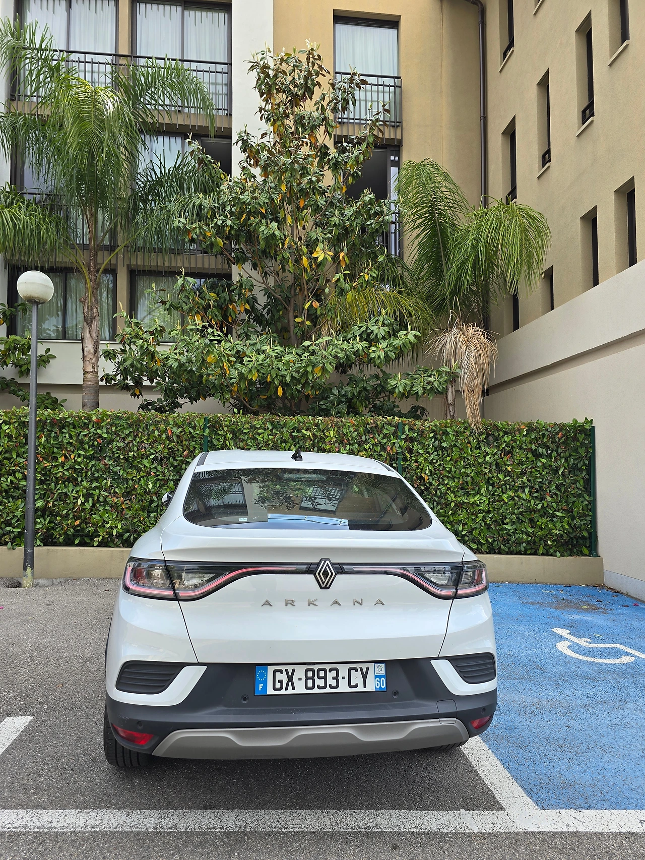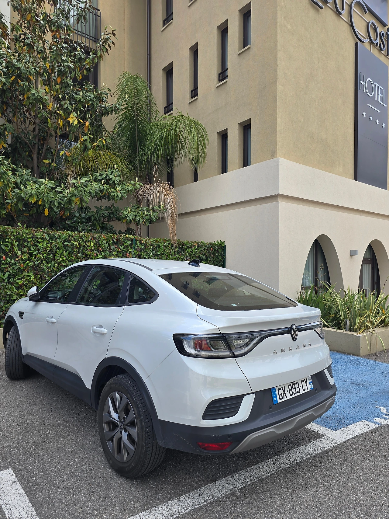 건네받은 차량은 르노의 아르카나(ARKANA)이다. 원래 예약했을 때는 '푸조 208' 또는 유사한 차량이라고 하더니, 푸조가 없나 보다. 니스 시내의 도로가 협소하여 소형차가 운전하기에 좋다고 하여, 소형차를 예약하였었다. 그래서 아반떼 정도 크기가 아닐까 생각했는데 생각보다 크다. 차체나 실내 높이가 세단보다 높고 SUV보다는 낮다. 좌석은 탄탄하게 몸을 잡아주는 느낌이 있으며, 실내 분위기가 전반적으로 묵직하여 남성적인 느낌이 난다.